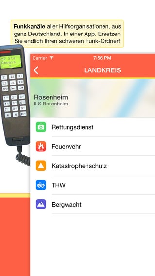 Die für Verlegungsfahrten notwendigen Funkkanäle wurden bisher immer in dicken Ordnern im RTW/NEF mitgeführt. Neben der Kanalortung beinhaltet die Rettungsdienst App auch eine Übersicht aller deutschen BOS Funkkanäle von Rettungsdienst, Feuerwehr, Katastrophenschutz, THW und Bergwacht. Es sind sowohl analoge Kanäle als auch digitale Rufgruppen aufgeführt.